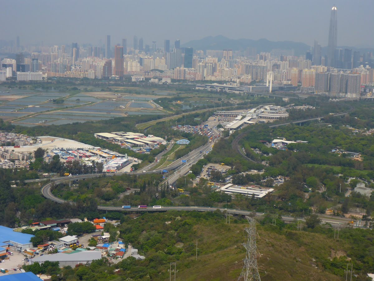 未到山頂,已看到落馬洲管制站。右邊是洲頭和潘屋村。